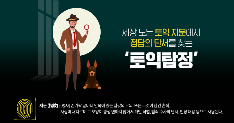 복잡한 문제를 풀어가야 할 때, 불미스러운 사건을 마주했을 때 여러 전문가가 입을 모아 하는 말입니다. 그 어떤 자료나 지식보다 유용한 단서를 ‘현장’에서 찾을 수 있다는 뜻일 텐데요. 이 명제를 토익 공부에 적용해 보면 어떨까요? 사건 현장에 답이 있듯, 토익 지문에서 단서를 찾을 수 있습니다. <토익스토리>가 여러분의 토익 공부를 도와줄 든든한 지원군 ‘토익탐정’을 소개합니다. ‘토익탐정’과 함께 지문 속에서 단서를 발견해 정답을 찾아보세요!