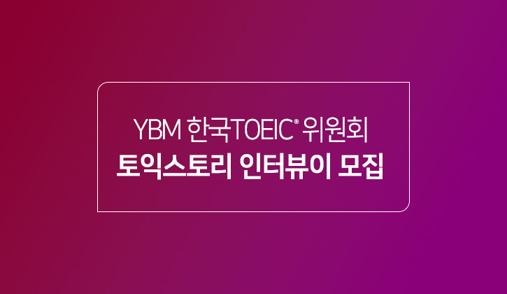 YBM 한국TOEIC위원회에서 자신만의 솔직 담백한 이야기를 들려주실 인터뷰이를 모집합니다. 인터뷰는 <토익스토리> , 한국TOEIC위원회 뉴스레터 YBM TOAST, YBM 어학시험 사이트 등에 게재될 예정입니