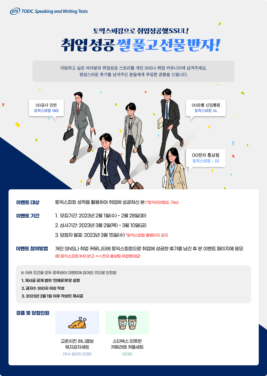 당첨자 발표: 2023.03.15(수) 토익스피킹 홈페이지 공지