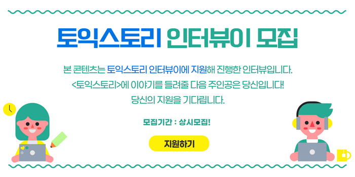 지난 8월 채용 플랫폼 자소설닷컴에서 공개한 자료에 따르면 채용 공고 조회수는 전년 대비 15.7% 상승했으며 자기소개서 작성 수도 10.5% 늘어났다고 합니다. 이처럼 취업을 준비하시는 모든 분이 원하는 목표를 위해 열심히 달리고 계실 것 같은데요. <토익스토리>는 2년의 학과 조교 근무를 마치고 토익/토익스피킹과 함께 취업을 준비하고 계신 이성재 님을 만났습니다. 성재 님은 대학 신입생때부터 토익과 토익스피킹을 응시하며 어학 성적과 영어 실력을 쌓아왔는데요. 지금부터 자세한 이야기를 들어보겠습니다. 📒